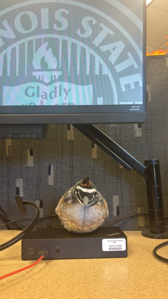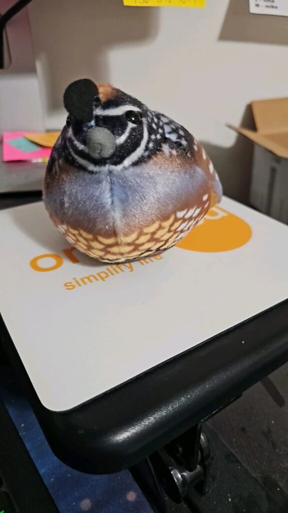 Welcome to Mark’s World!Continue reading to see the adventures of Mark, the Bobwhite, and The Bobwhite Patrol of Wood Badge 6-144-25! Mark’s Adventures Mark helps Ethan at his job at Illinois State University. Mark also helps Renna at her workplace! Before our patrol meeting, Mark is hellping Renna pick out fabrick for our flag! Teamwork Upcoming Movies